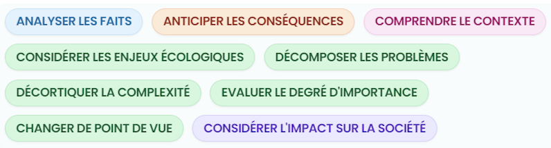 Analyser des faits, décomposer la complexité et anticiper les conséquences. Ces compétences permettent d’évaluer des situations sous différents angles, en tenant compte des impacts écologiques et sociétaux, afin de prendre des décisions éclairées.