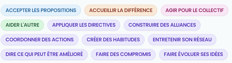 Favorisez la collaboration et l’esprit d’équipe en développant des compétences clés comme la création d’alliances, la gestion des différences et la capacité à faire évoluer des idées collectivement. Ces compétences permettent de renforcer les synergies au sein des équipes et d’atteindre des objectifs communs efficacement.